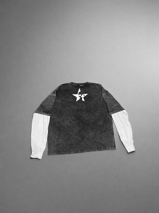 6lue t-shirt double layer long sleeve t-shirt vintage long sleeve t-shirt distressed acid washed
